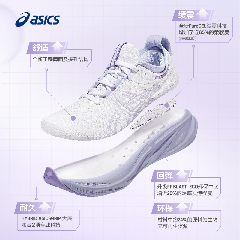 أسيكس ASICS جيل-نيمبوس 26 حذاء رياضي نسائي جديد للجري بتقنية التخفيف من الصدمات والارتداد مع تهوية