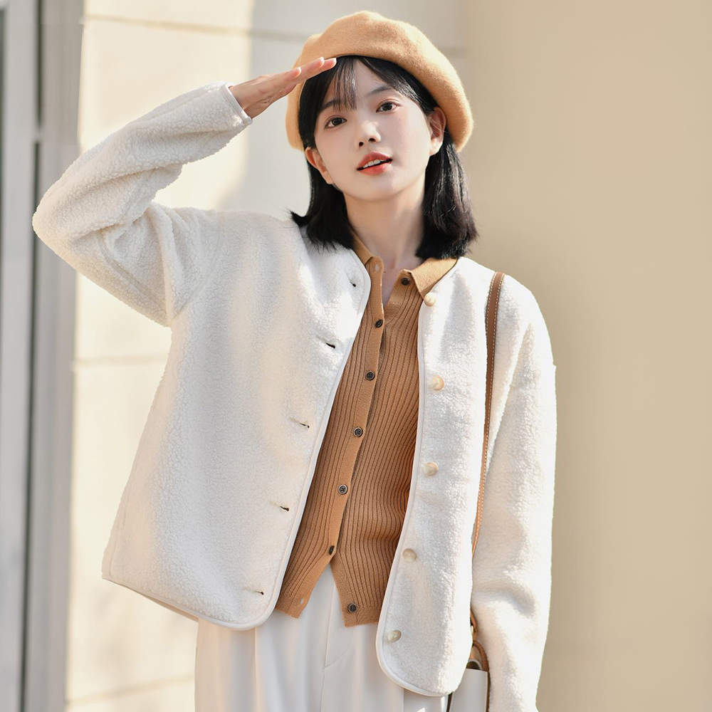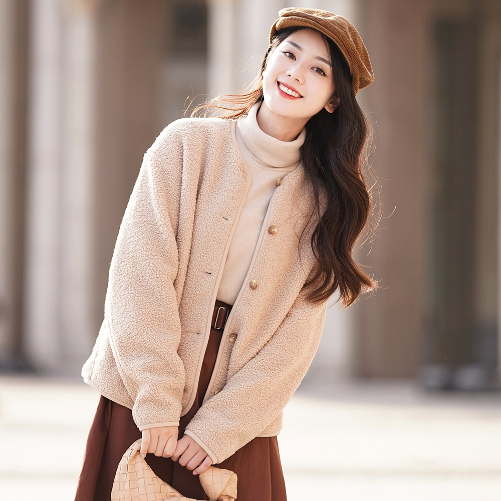 الرئيسية / ملابس المرأة / سترة نسائية من Uniqlo مصنوعة من صوف الشيربا القطبي المقلد برقبة دائرية وأكمام طويلة 461660