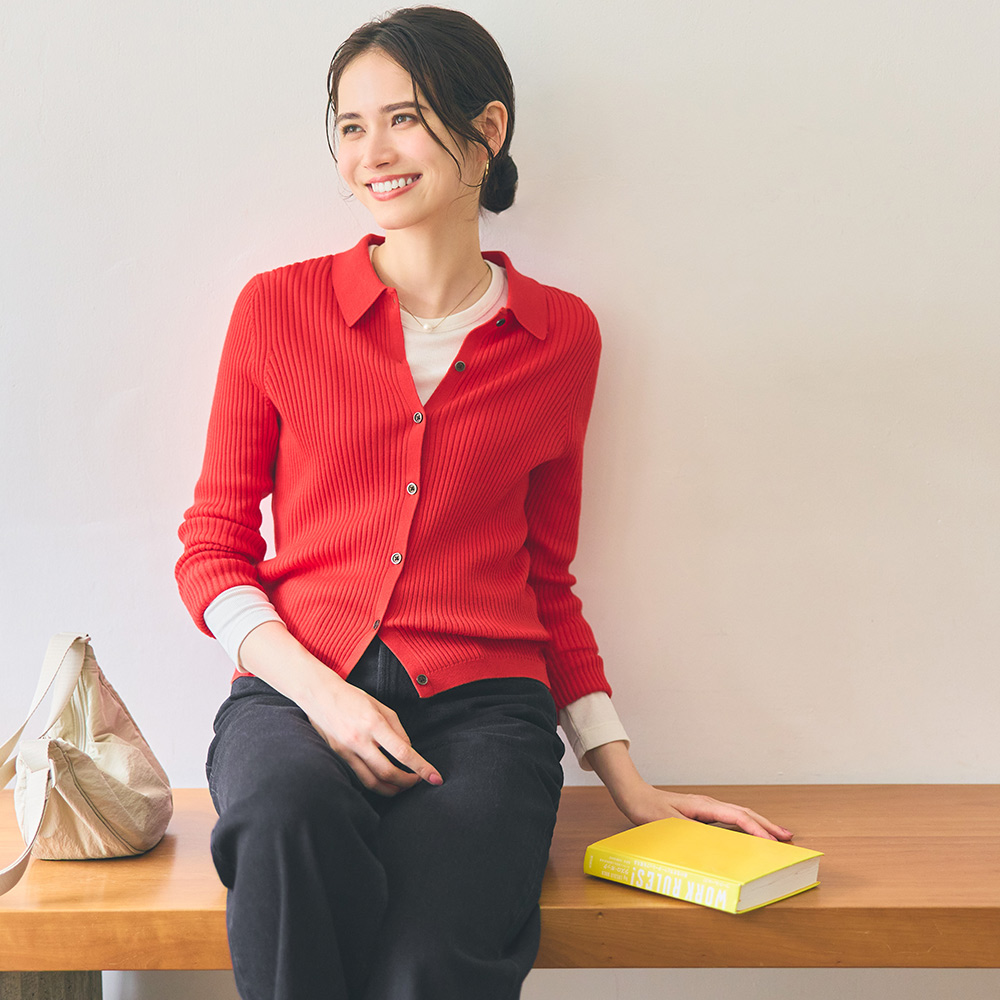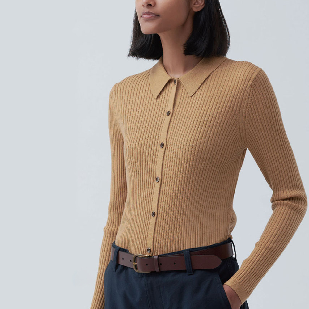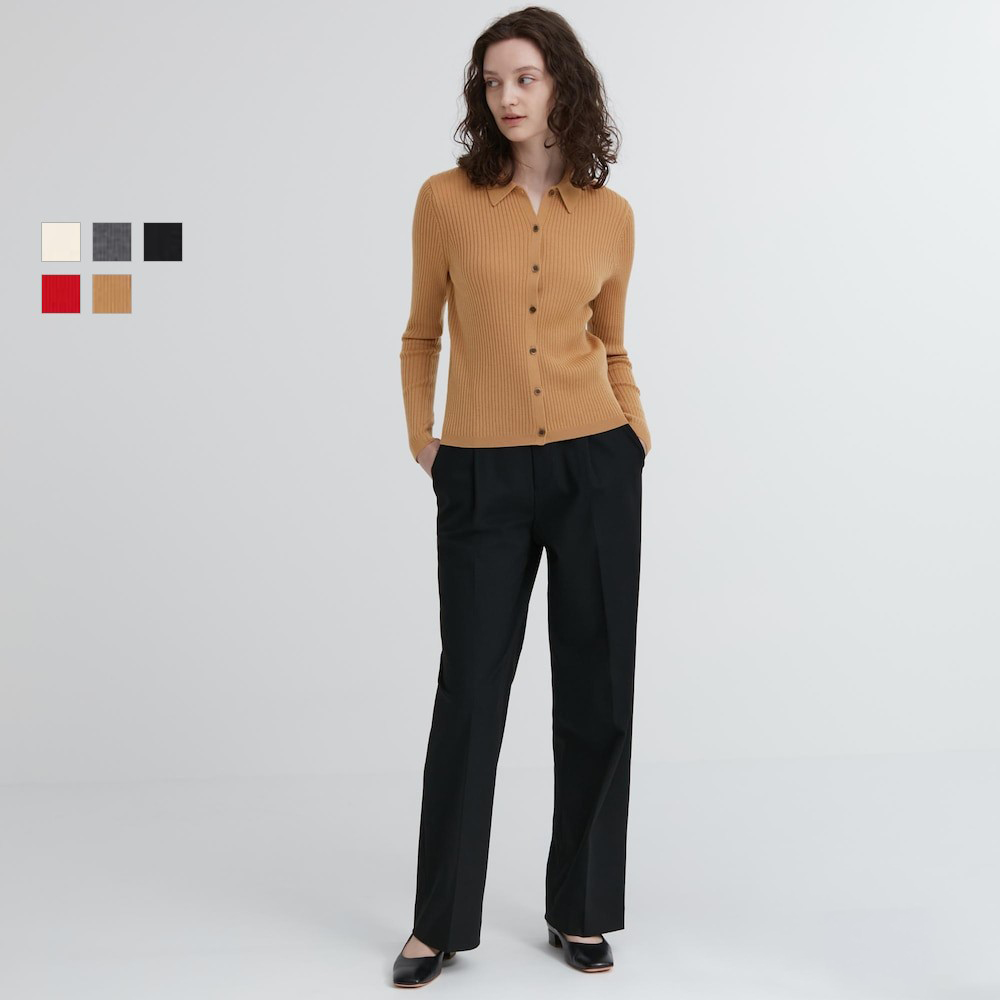 سترة Uniqlo النسائية من صوف ميرينو المضلع بياقة بولو (سترة صوفية بأكمام طويلة) 461034
