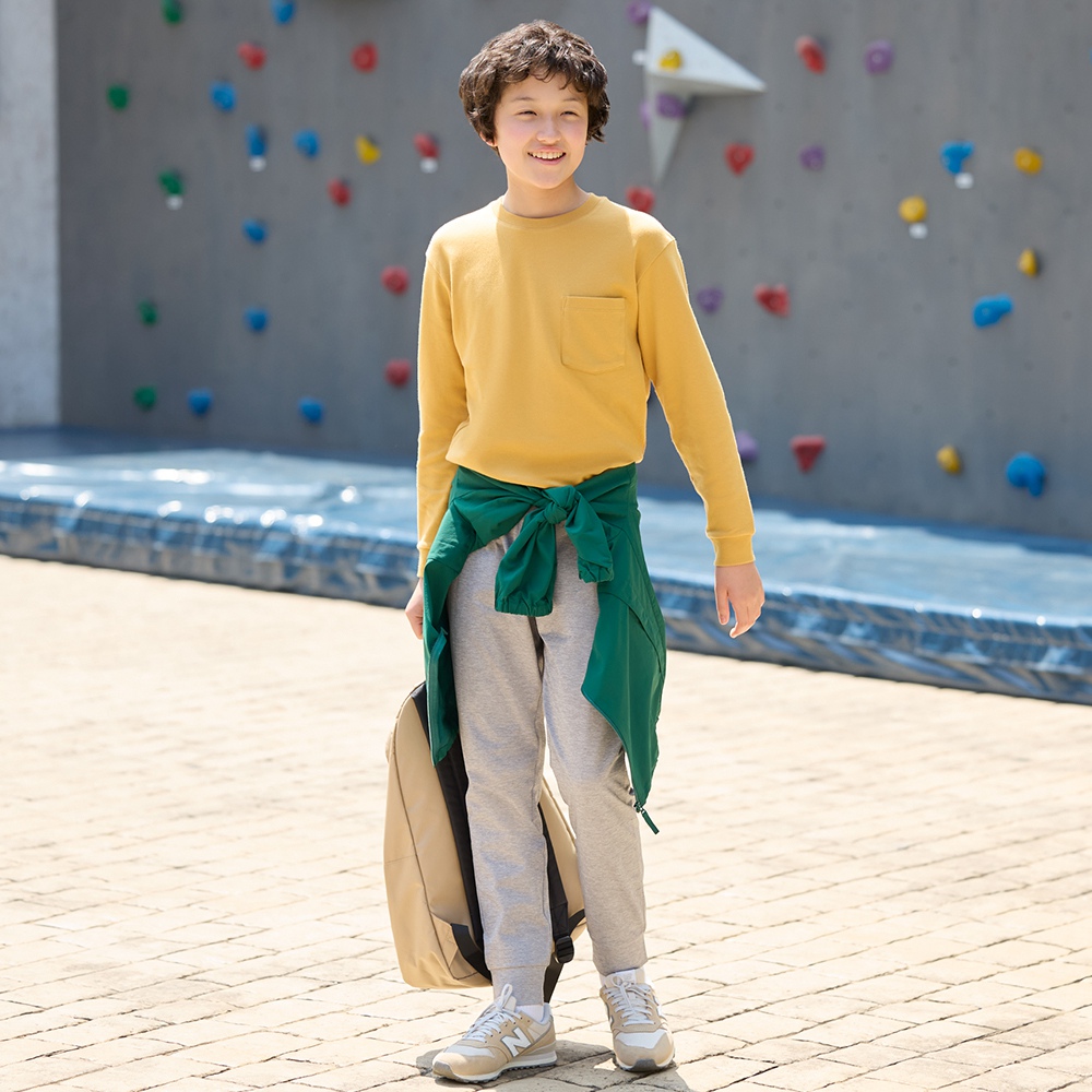 Uniqlo ملابس الأطفال/الأولاد/البنات تي شيرت ناعم برقبة دائرية (أكمام طويلة فضفاضة منتج جديد غير رسمي) 460080