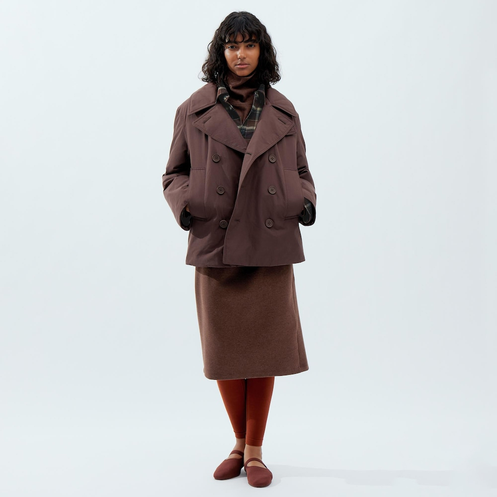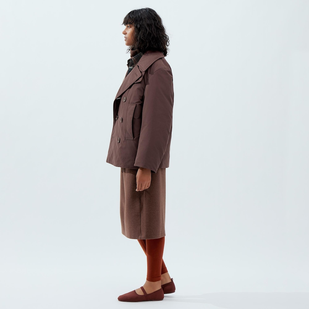 UNIQLO نموذج التعاون UNIQLO U 23 الخريف والشتاء المرأة مغلفة مزدوجة الصدر معطف قصير سترة 462895